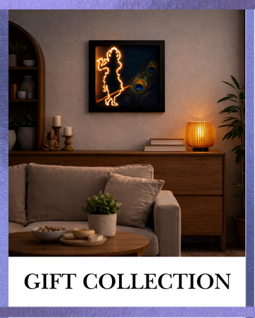 Transform your home ambiance with this enchanting LED-backlit wall art featuring Lord Krishna. This unique...