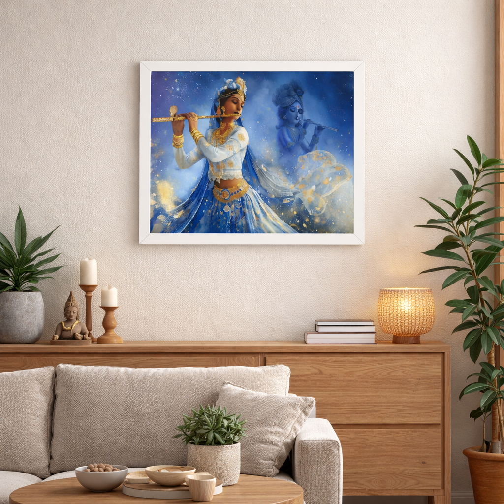 Divine Krishna LED Wall Art – Backlit Flute Player & Glowing Sanskrit Mantra Frame